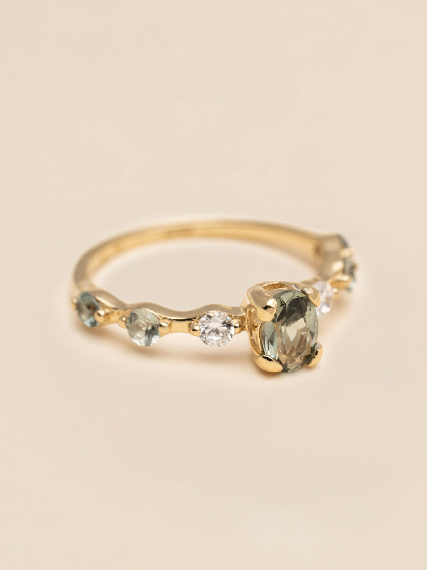 Where modern design meets classic allure. The Idunn ring showcases a luminous center stone, framed by delicate smaller stones that enhance its glow.