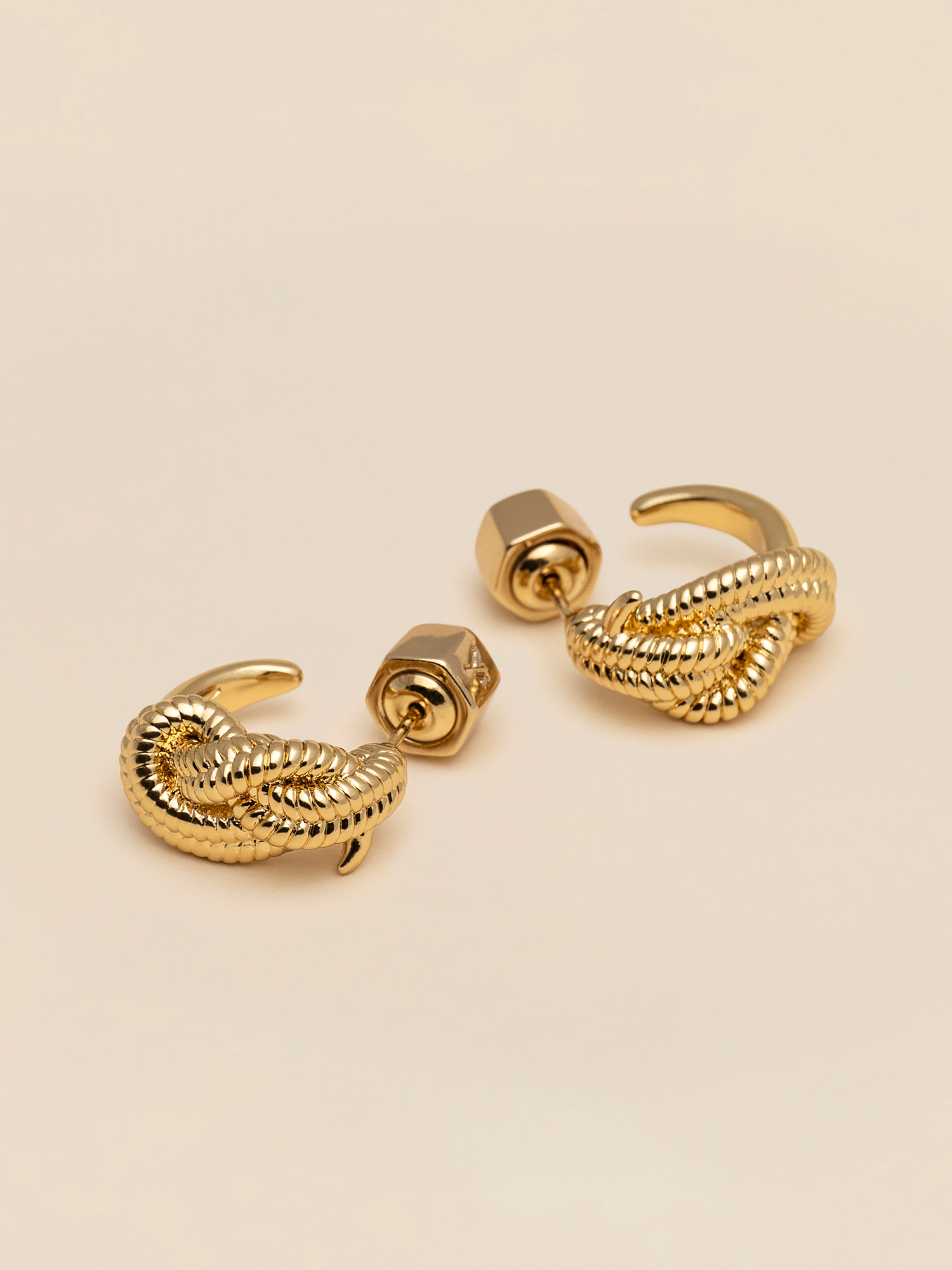 These handmade 18k gold-plated earrings are the embodiment of an artistic soul. Through the motif of a rope-twisted knot, we created these unique earrings. Match with Yves knot ring.