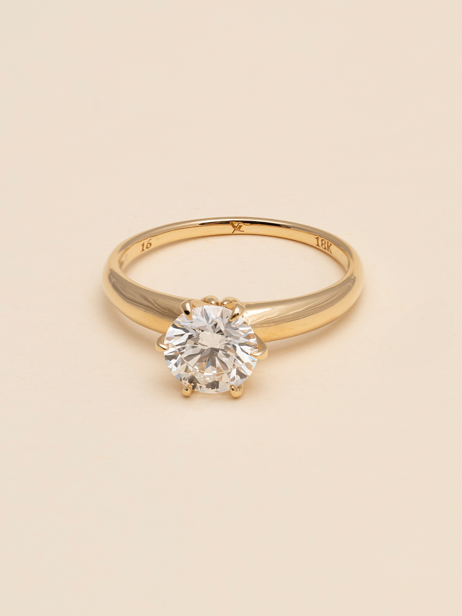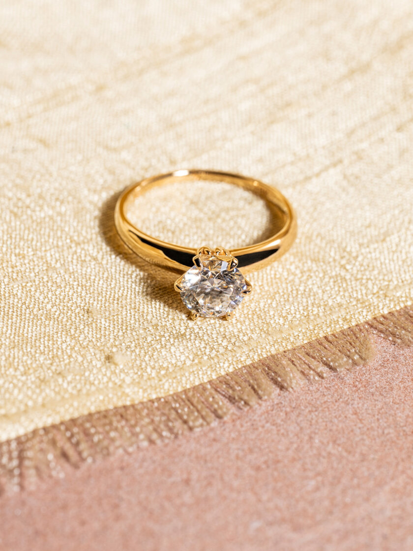 The Tiara diamond ring, set in a regal six prong crown, promise timeless elegance for a lifetime devotion.