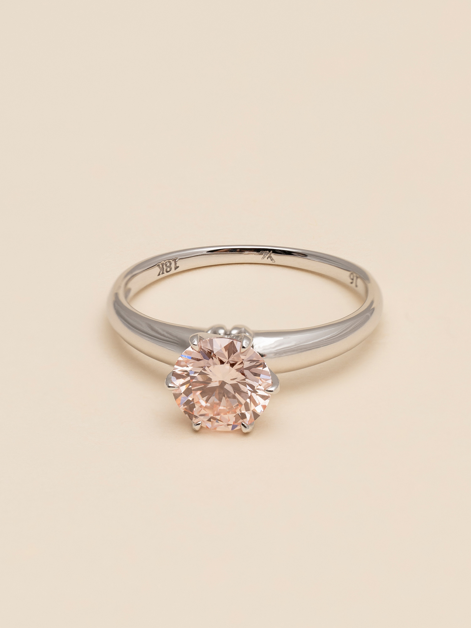 The Tiara pink diamond ring in white gold, set in a regal six prong crown, promise timeless elegance for a lifetime devotion.